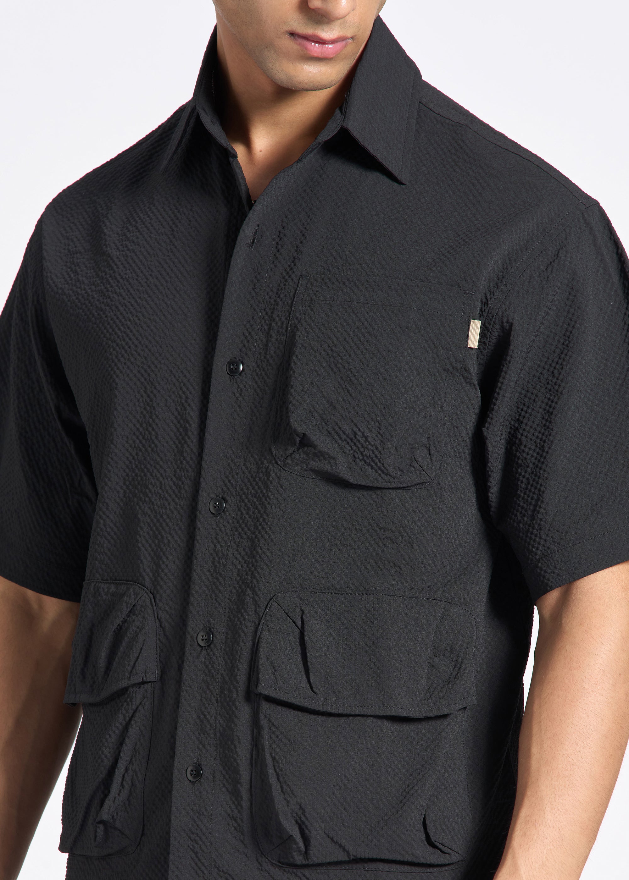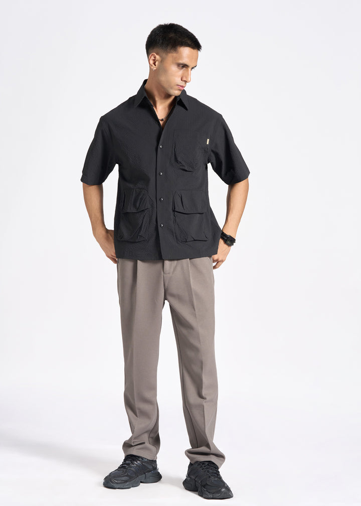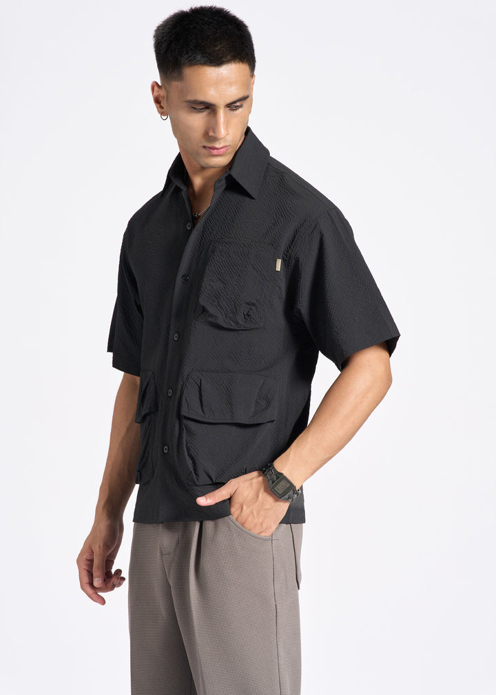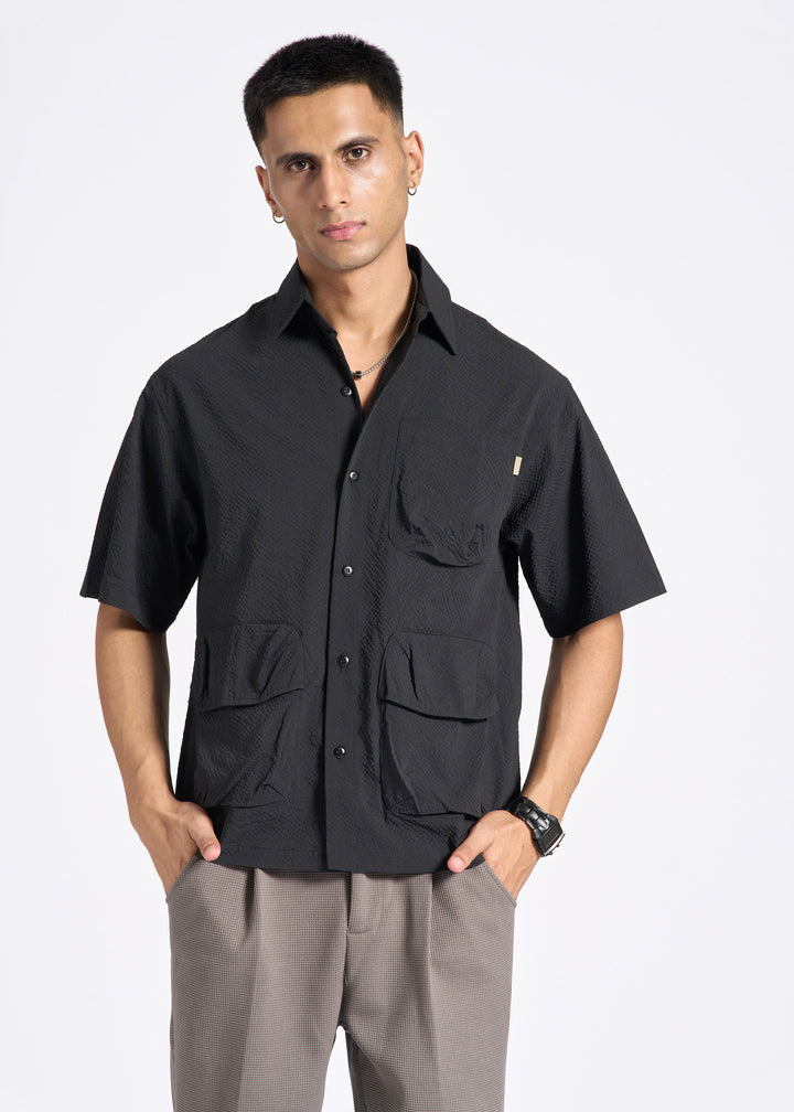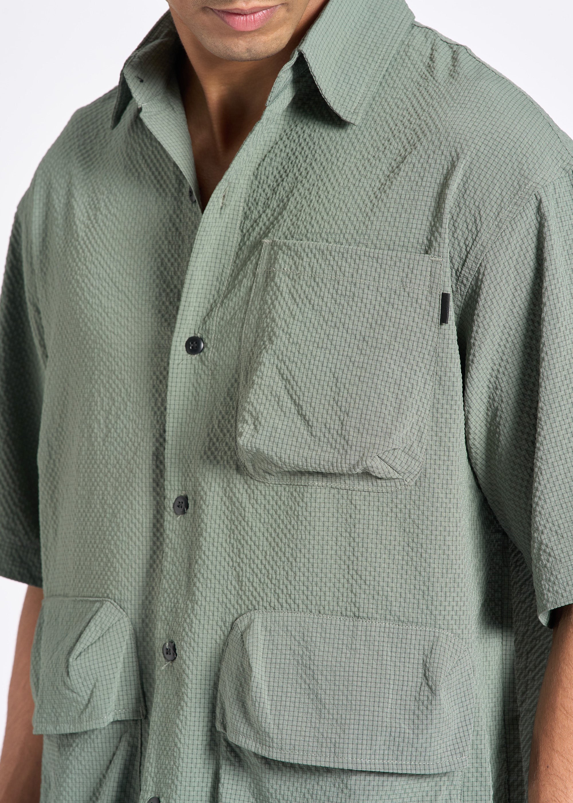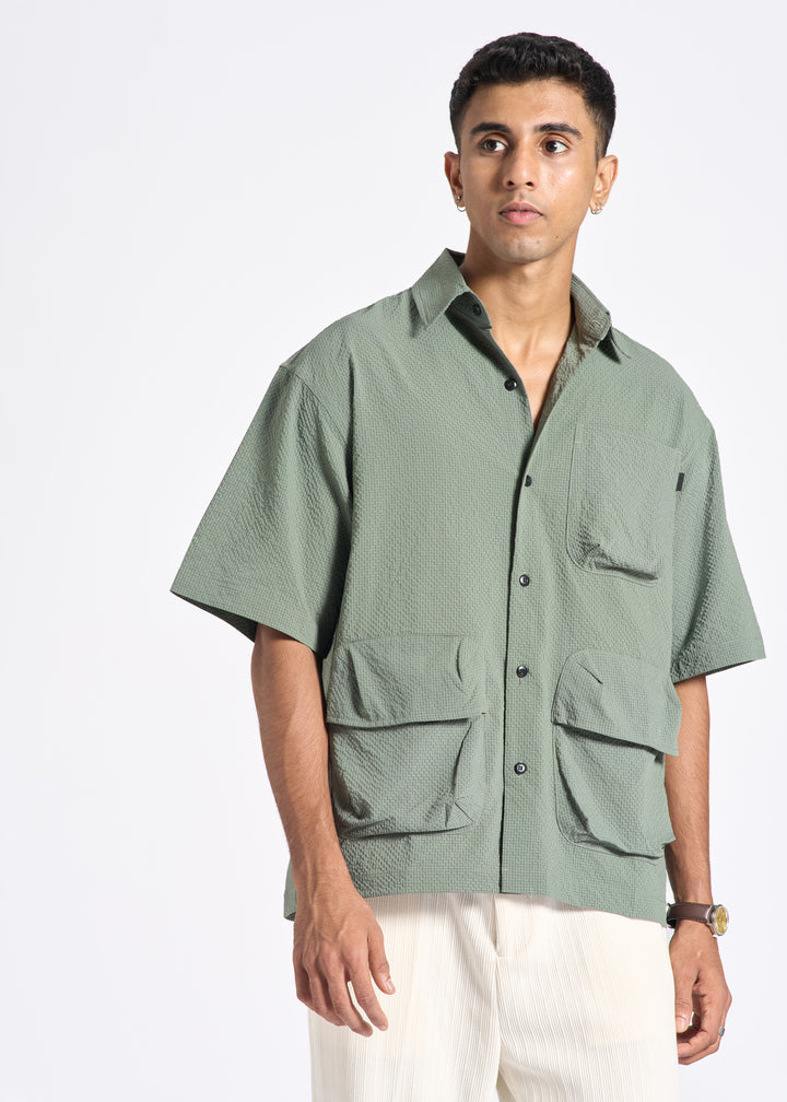 Crinkled Short-Sleeve Shirt with Triple Flap Pockets