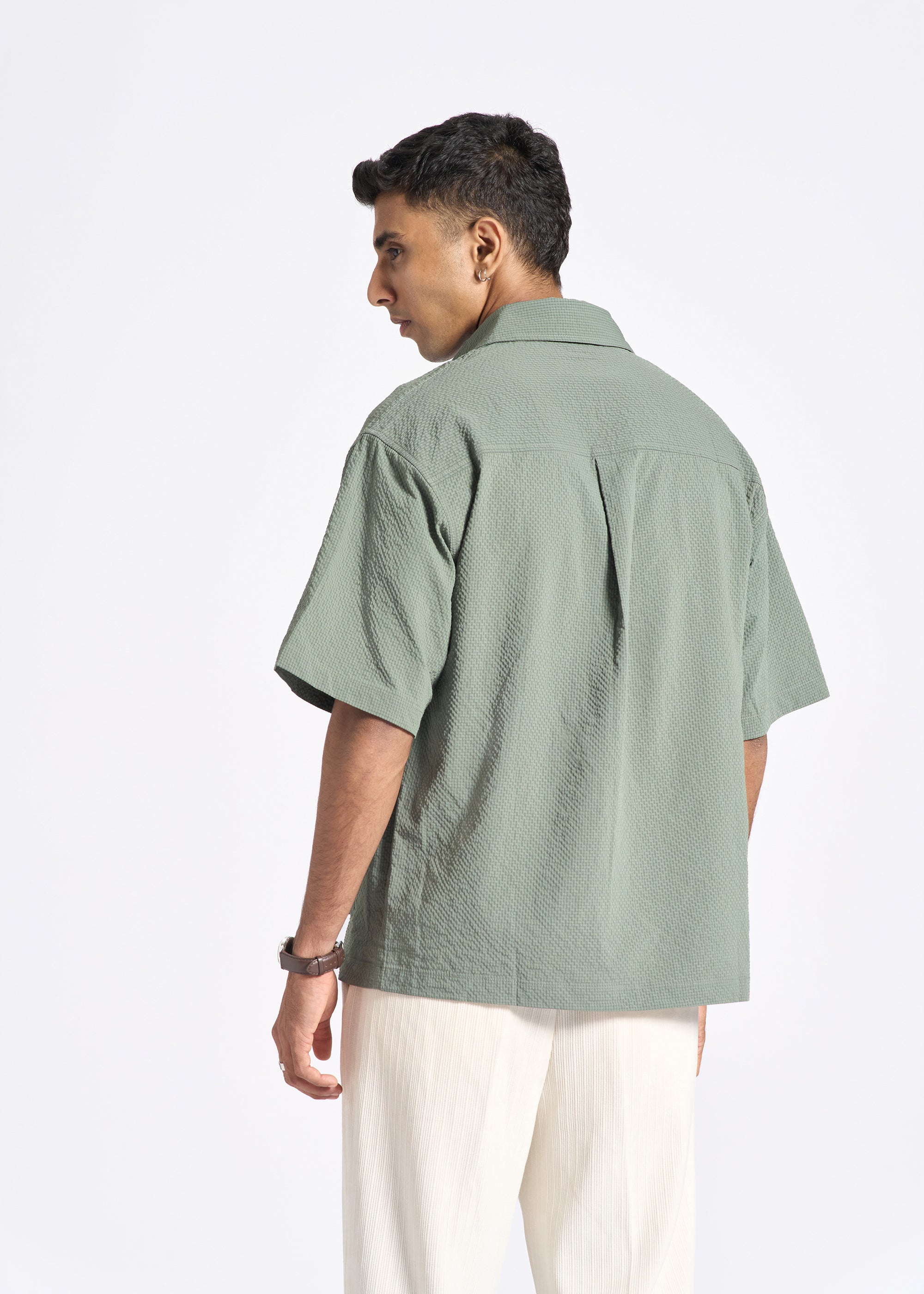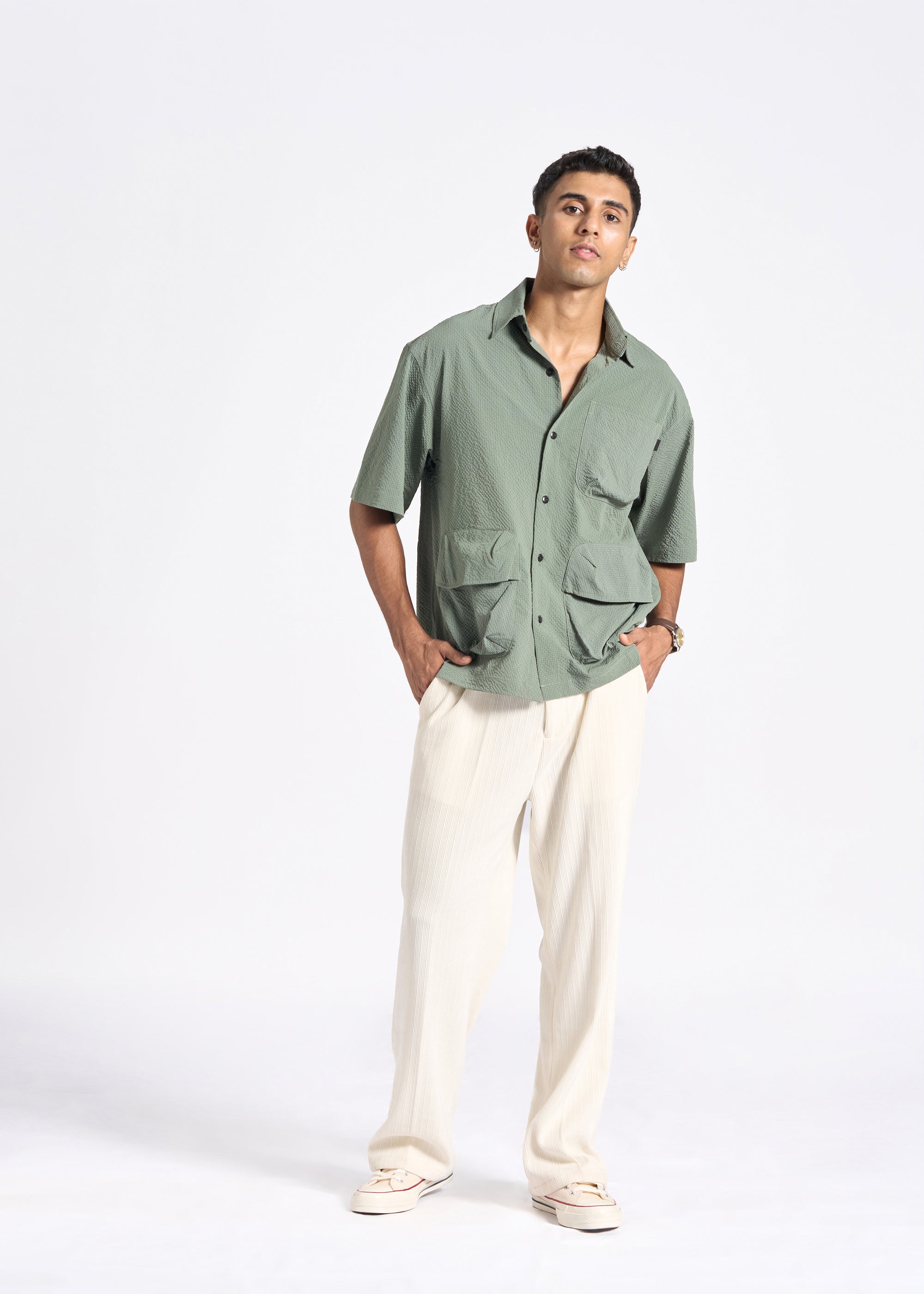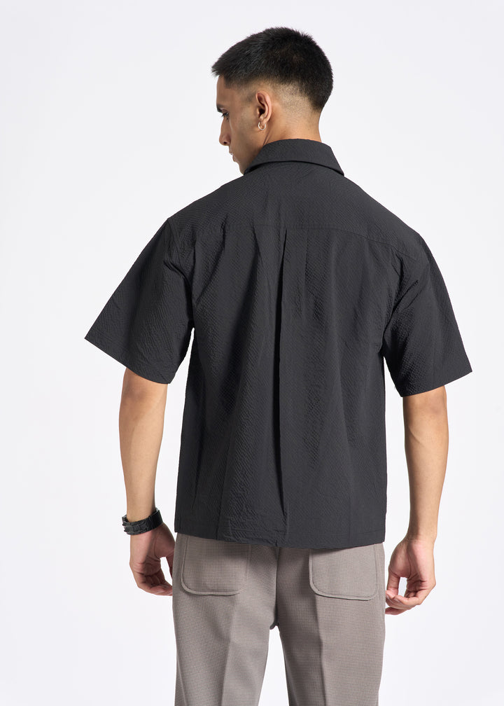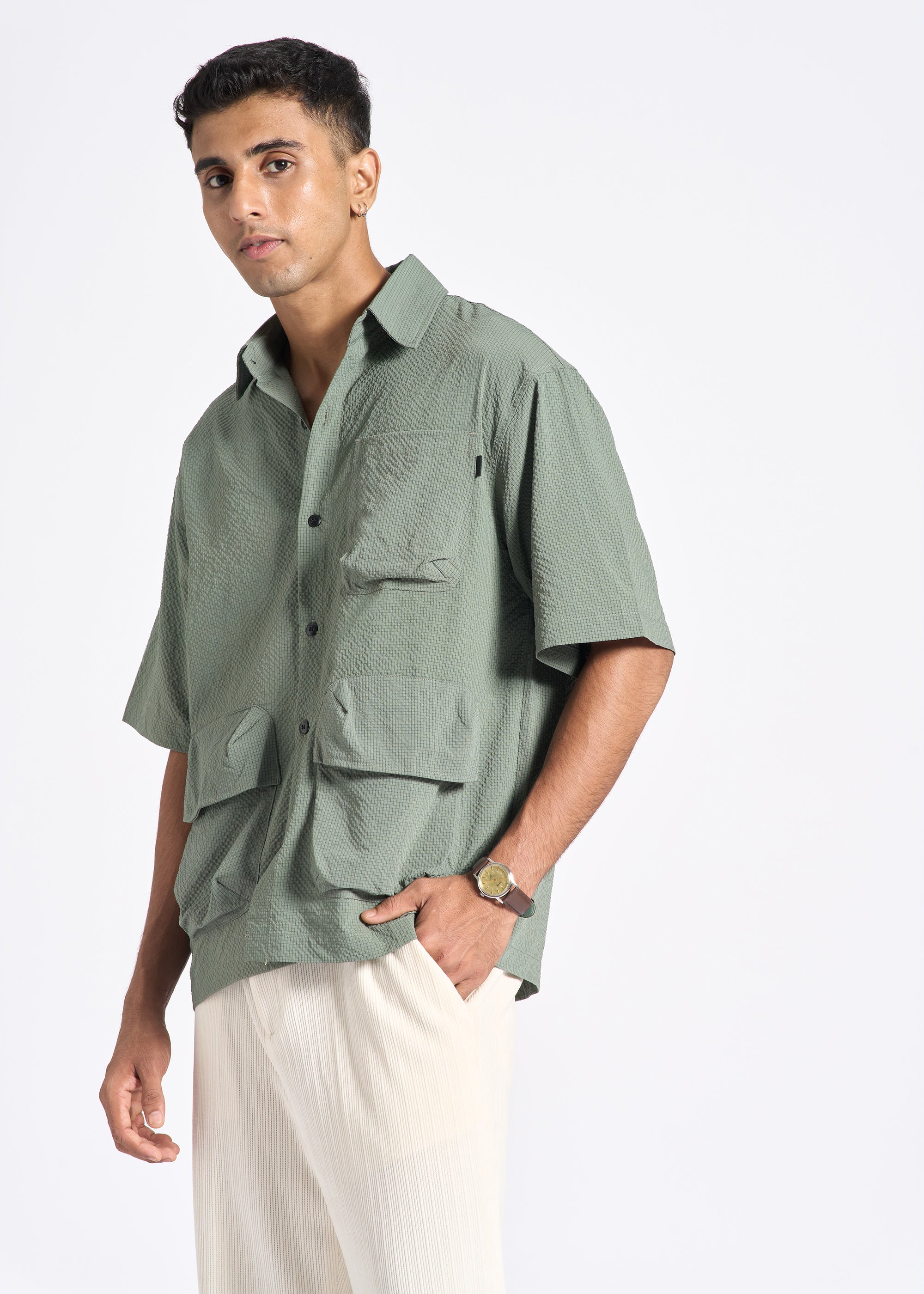 Crinkled Short-Sleeve Shirt with Triple Flap Pockets