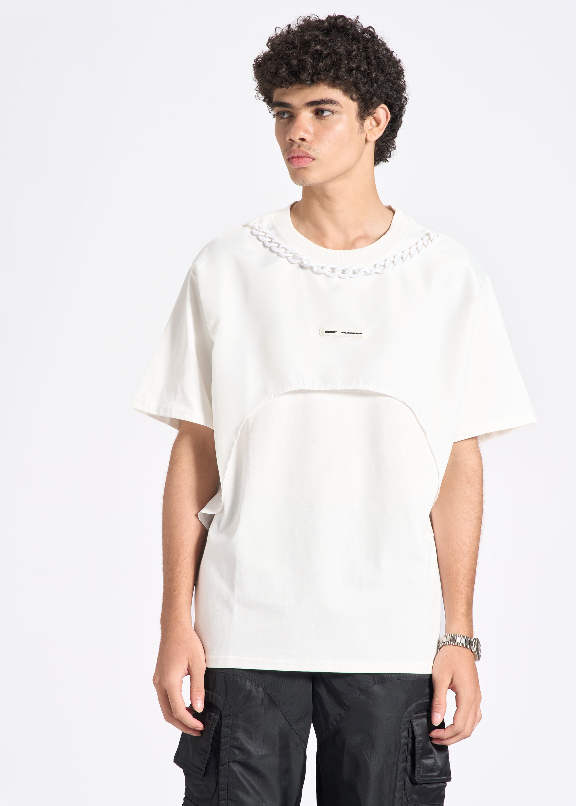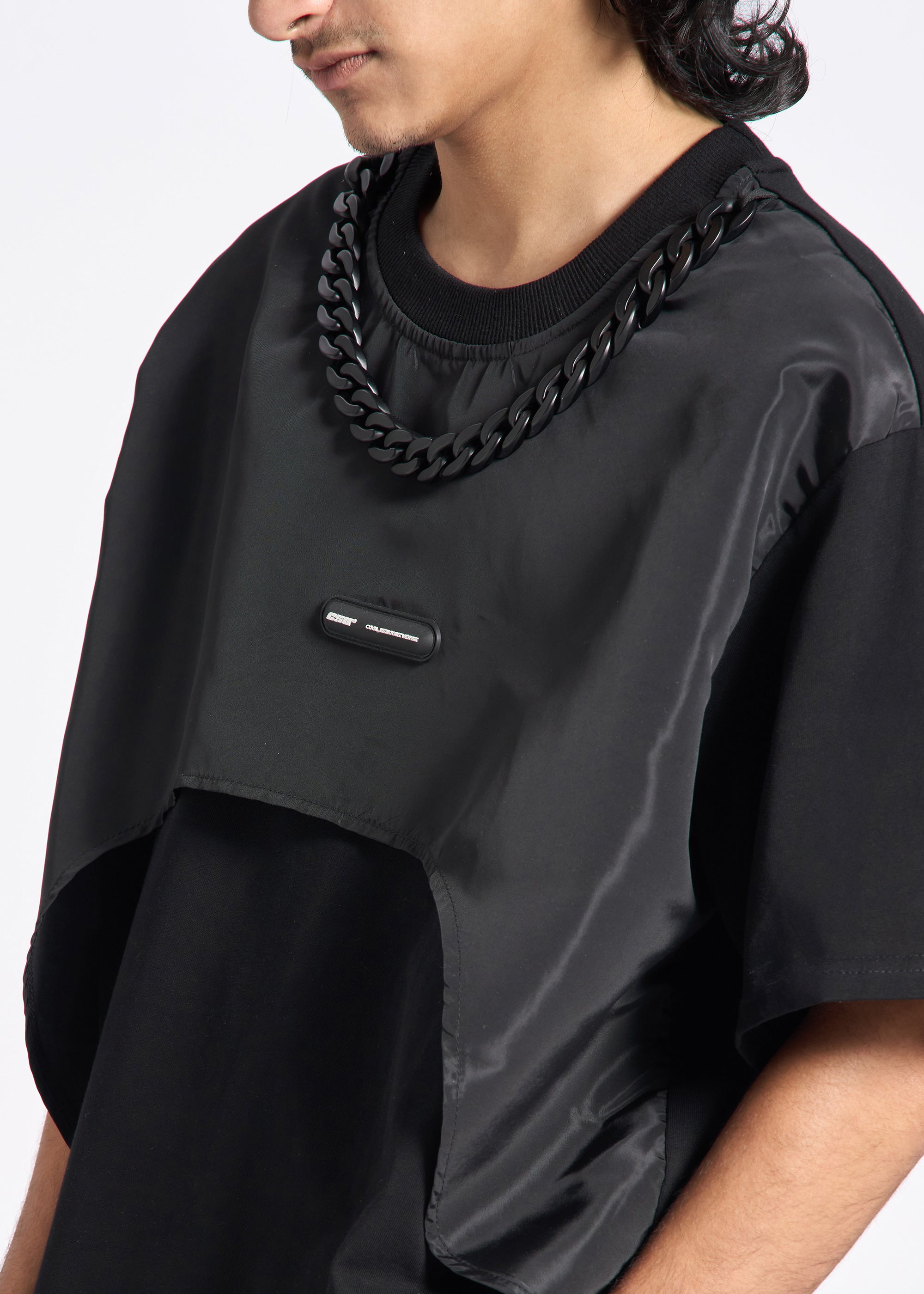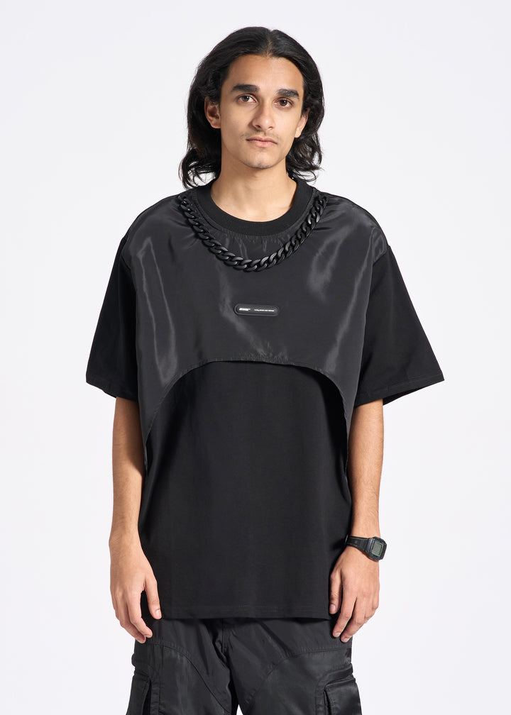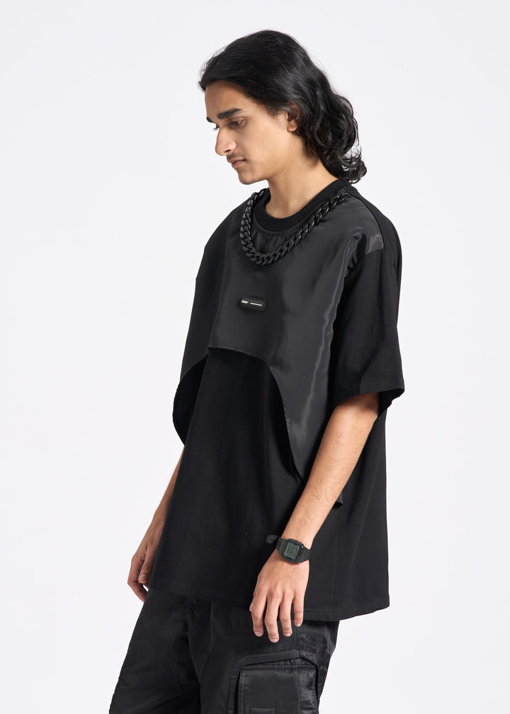 Oversized T-Shirt with Satin Overlay & Chain Detail
