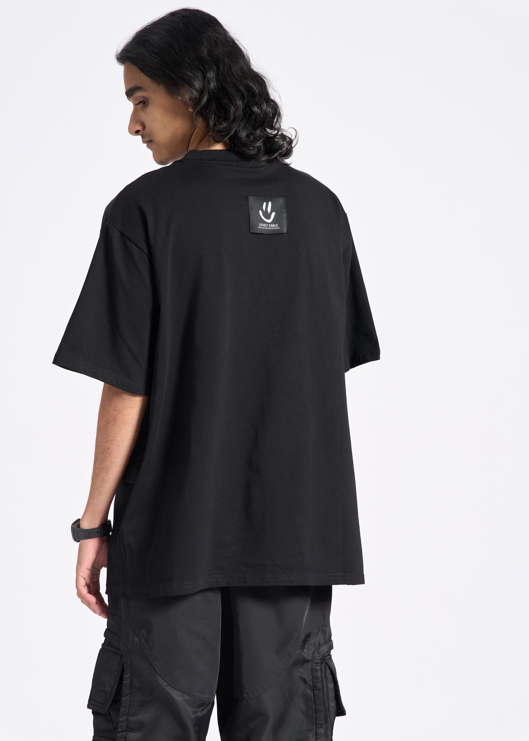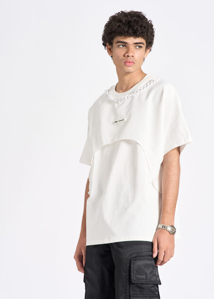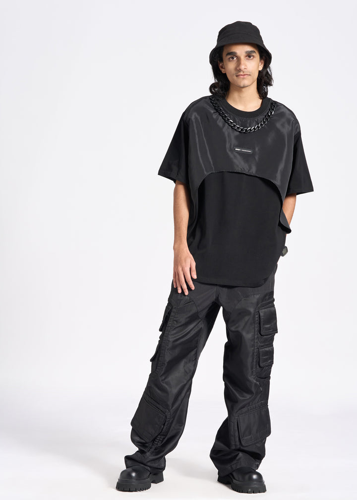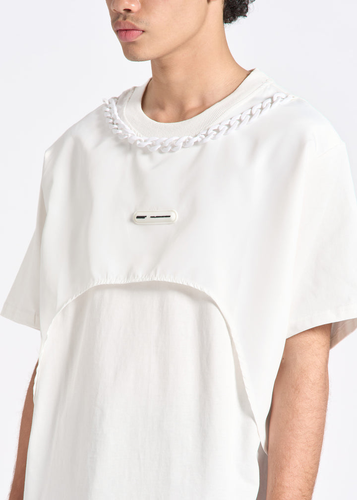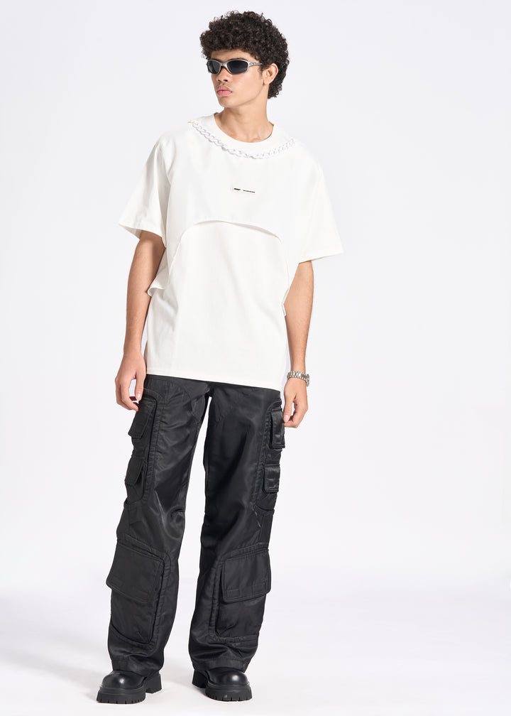 Oversized T-Shirt with Satin Overlay & Chain Detail