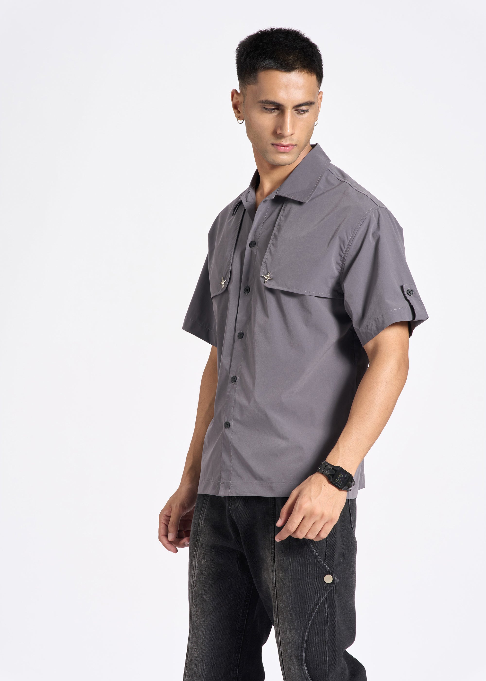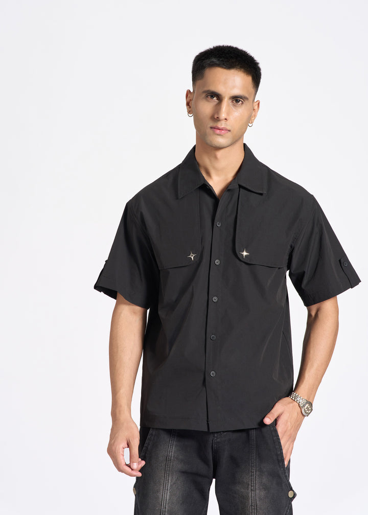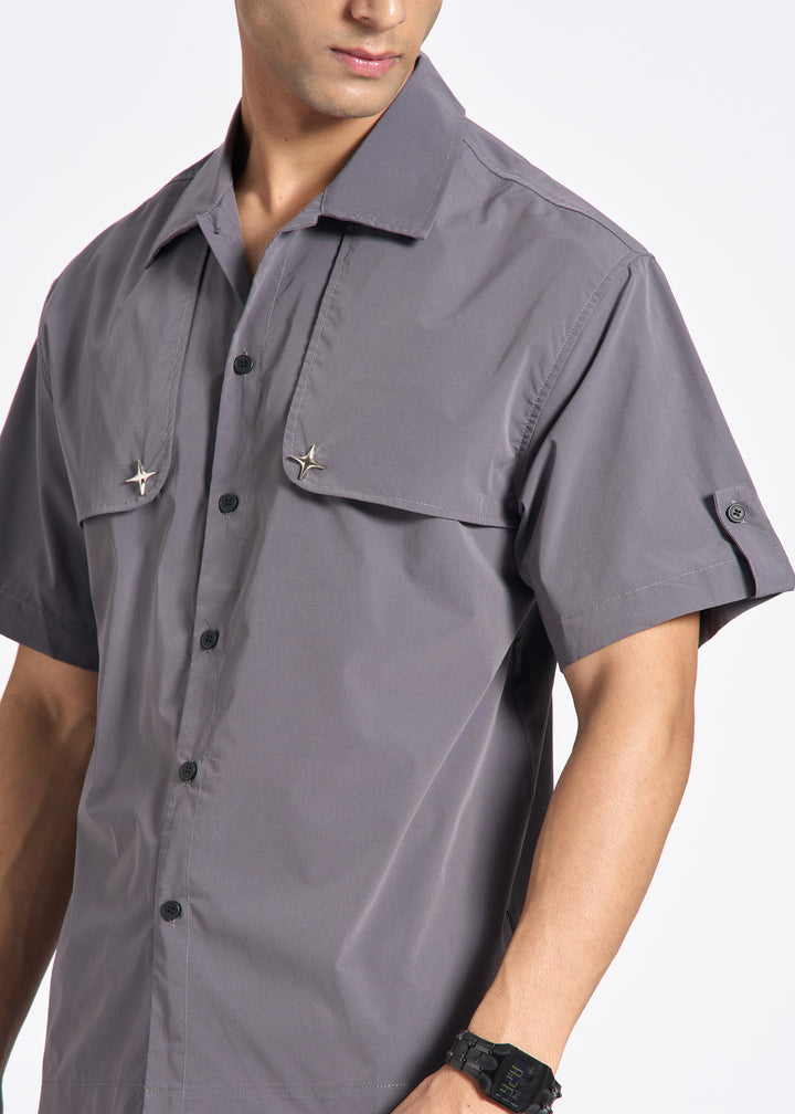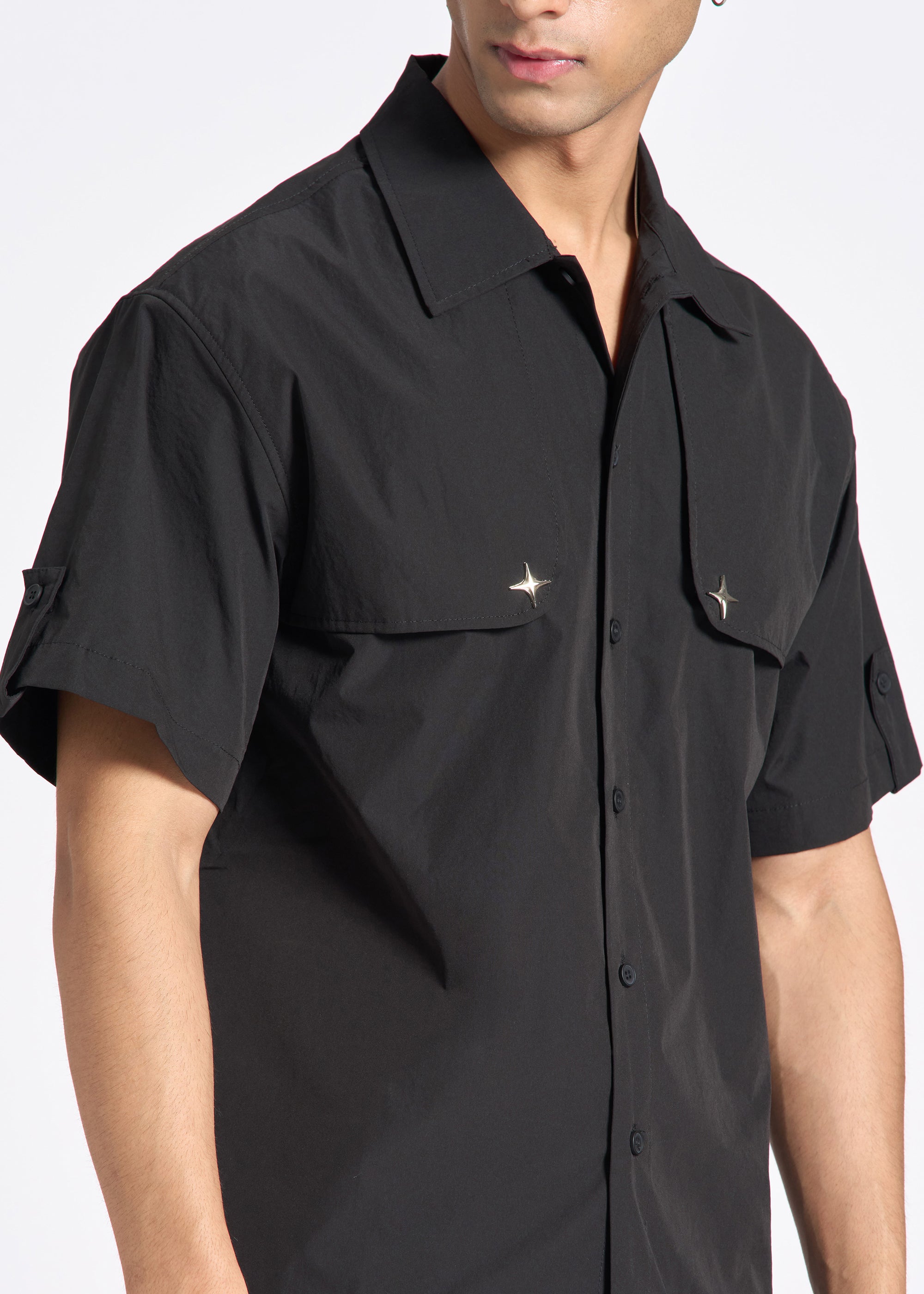 Short-Sleeve Shirt with Metal Star Flap Detail