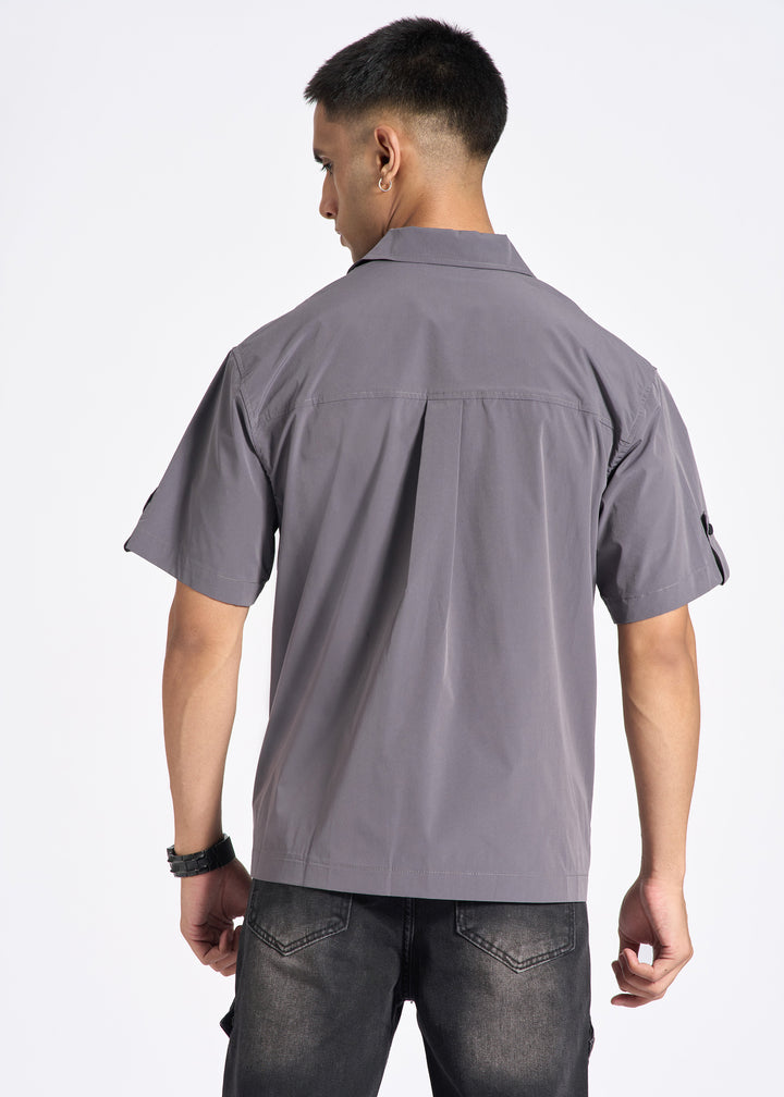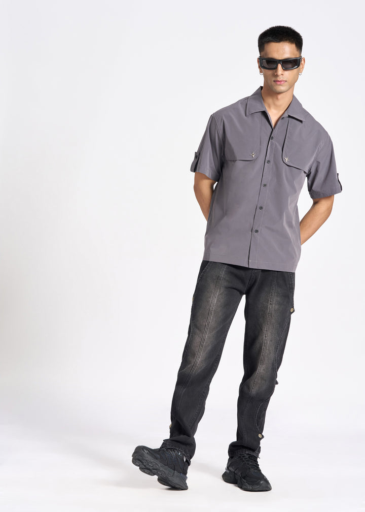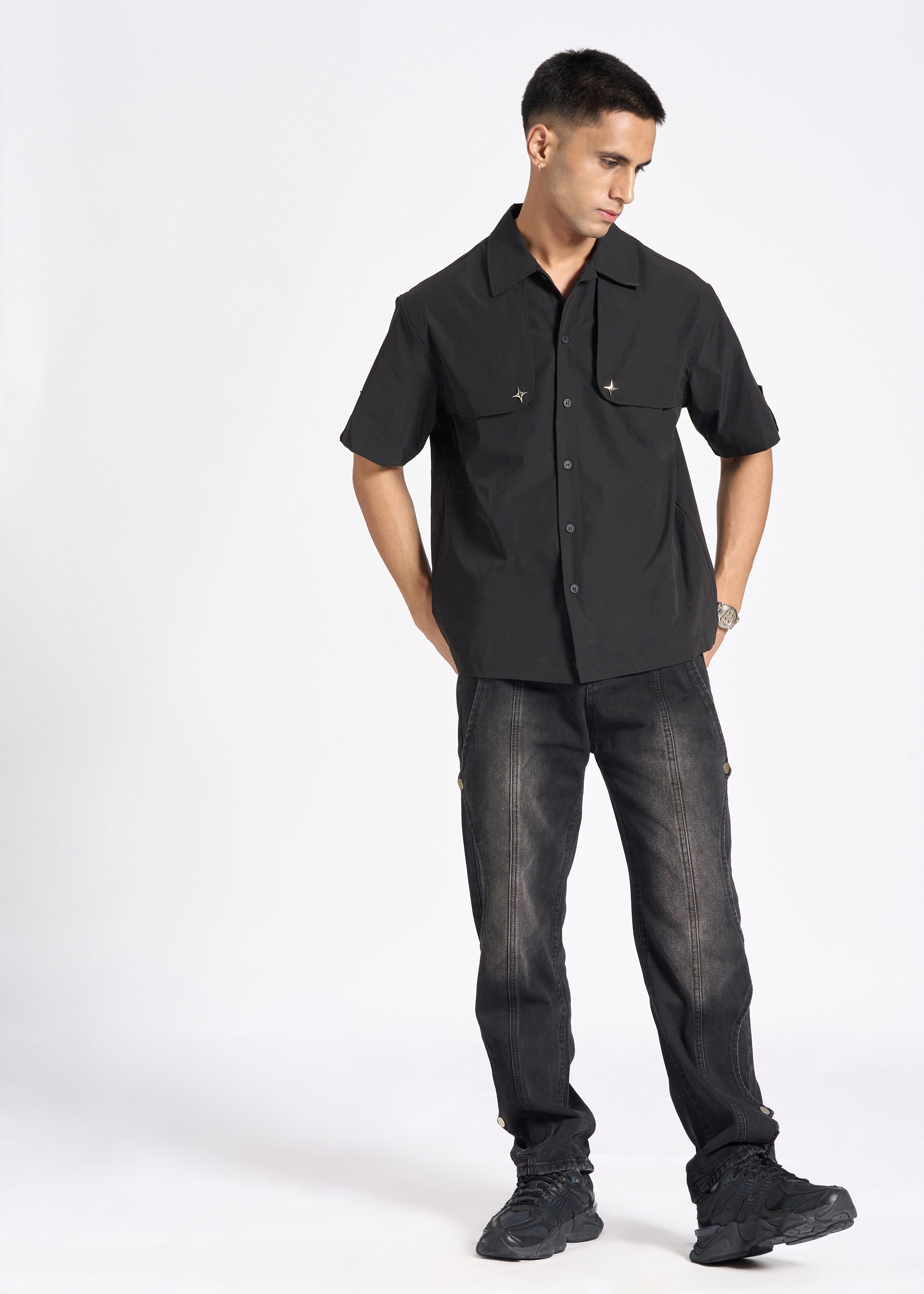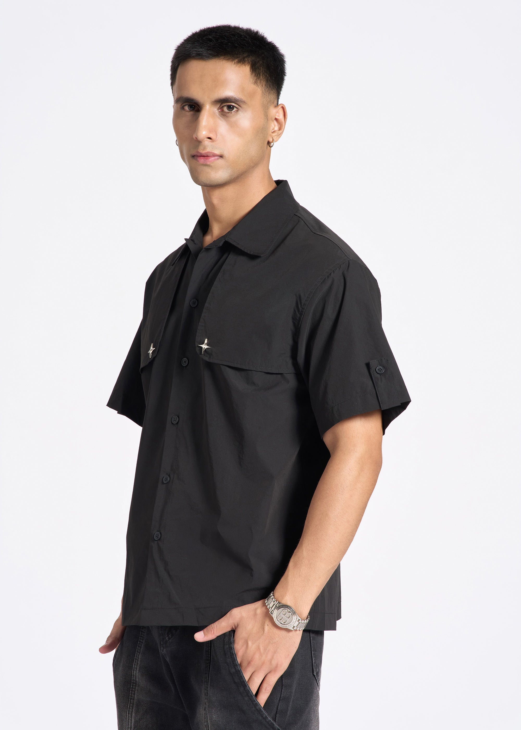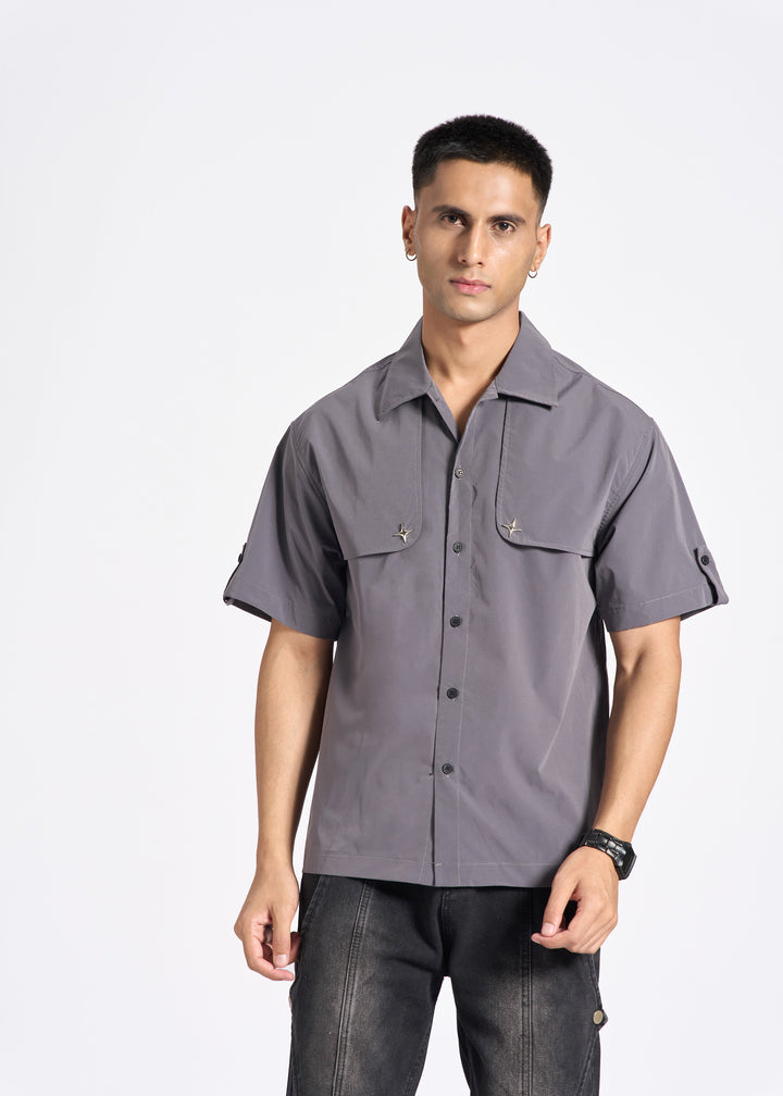 Short-Sleeve Shirt with Metal Star Flap Detail