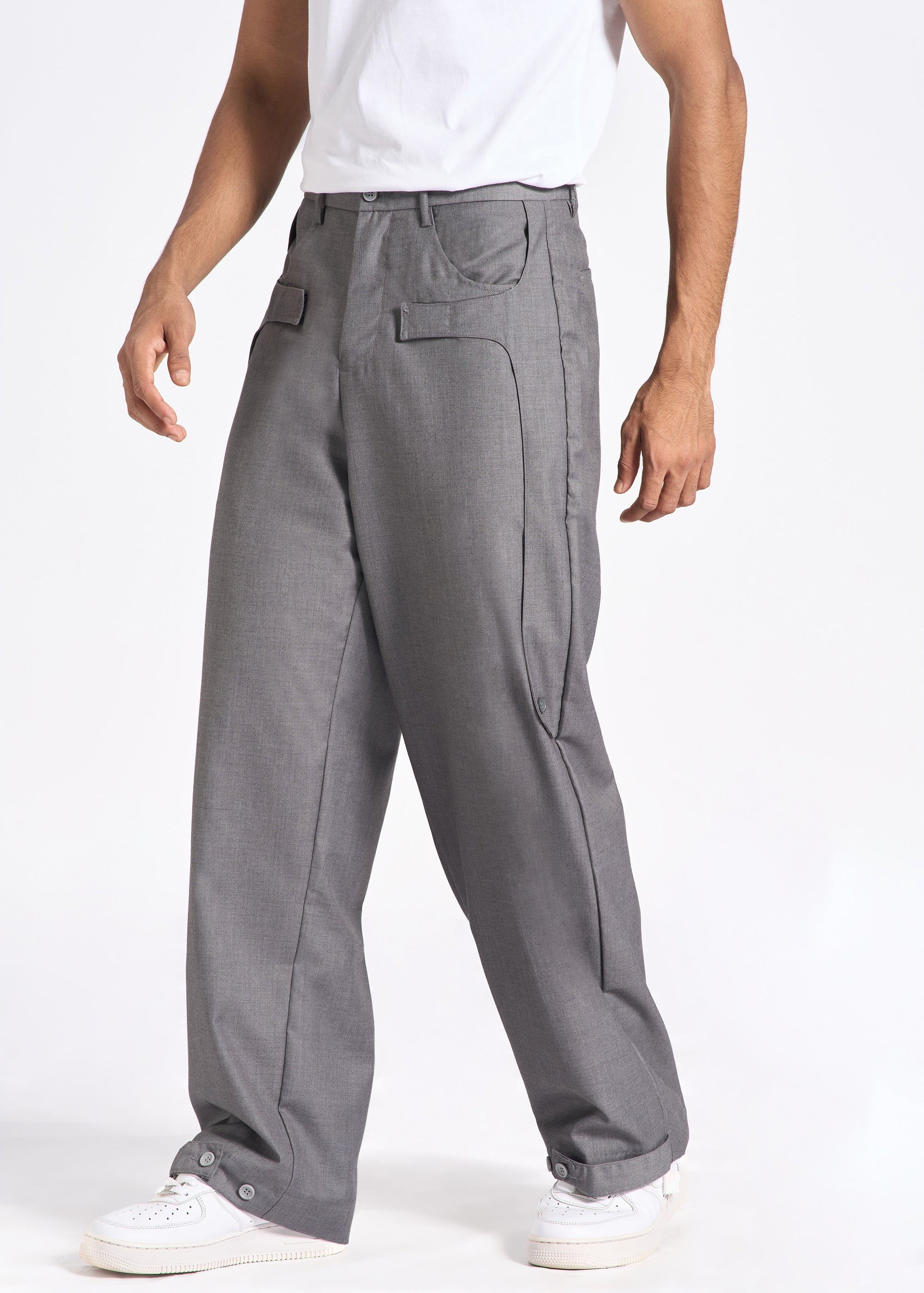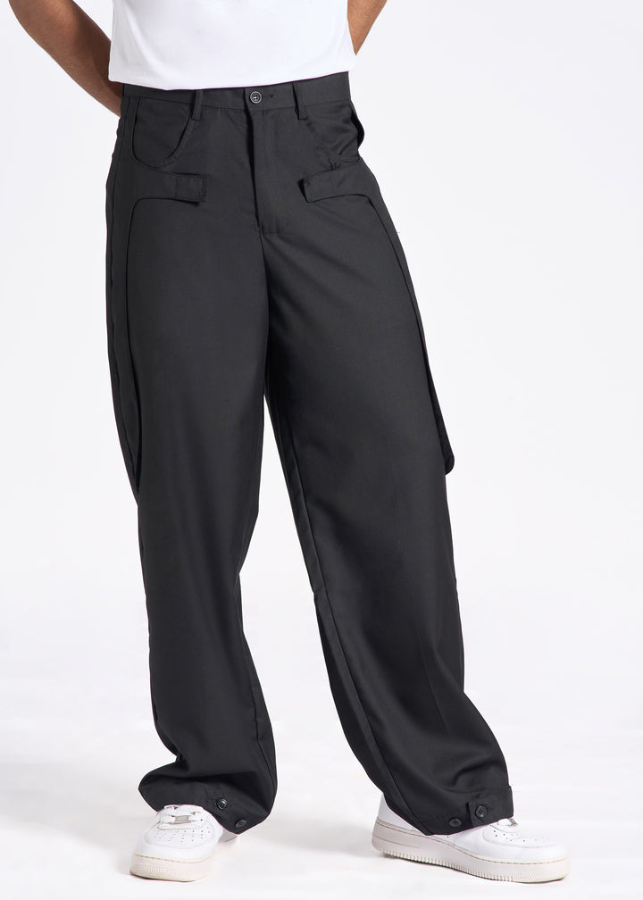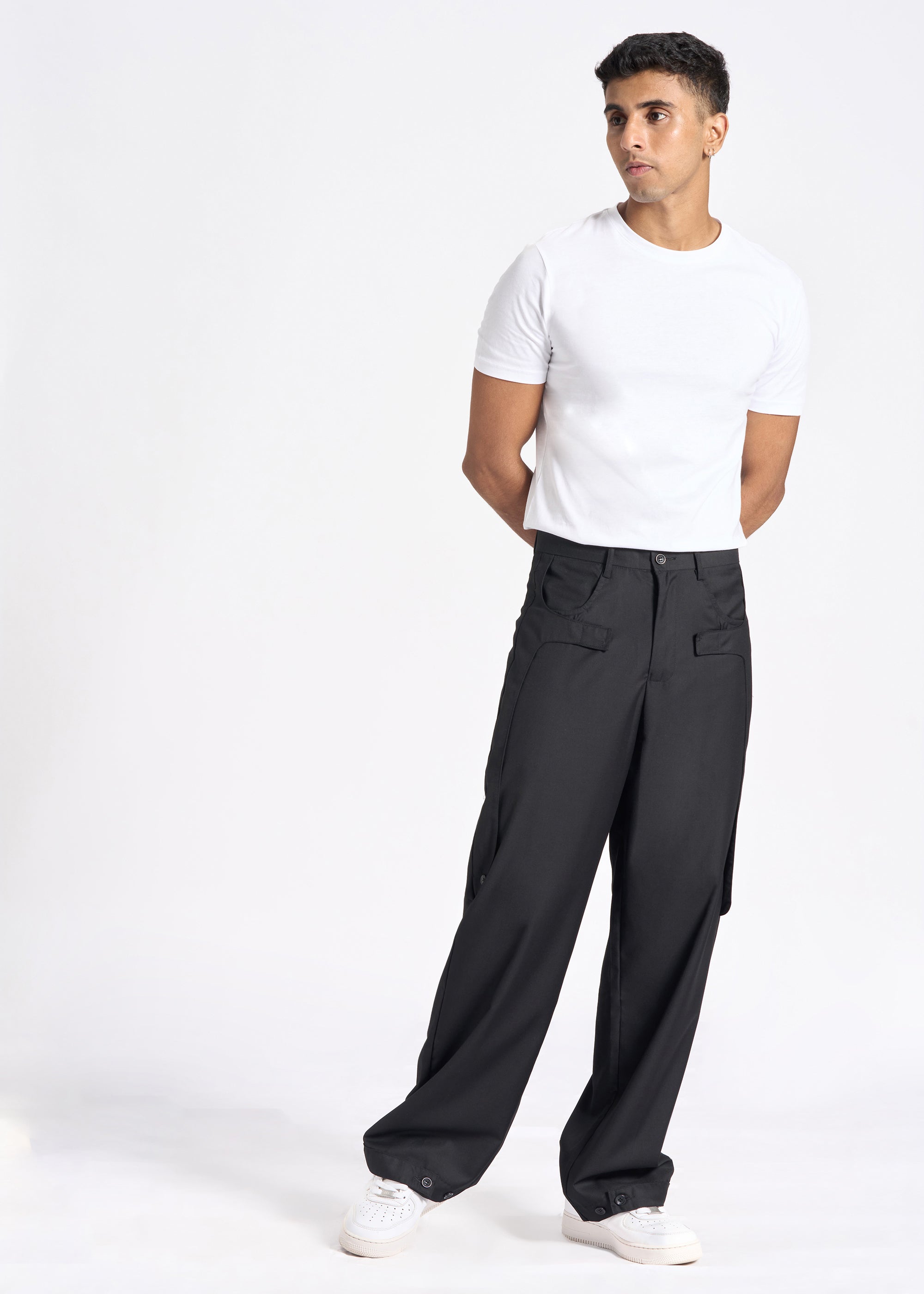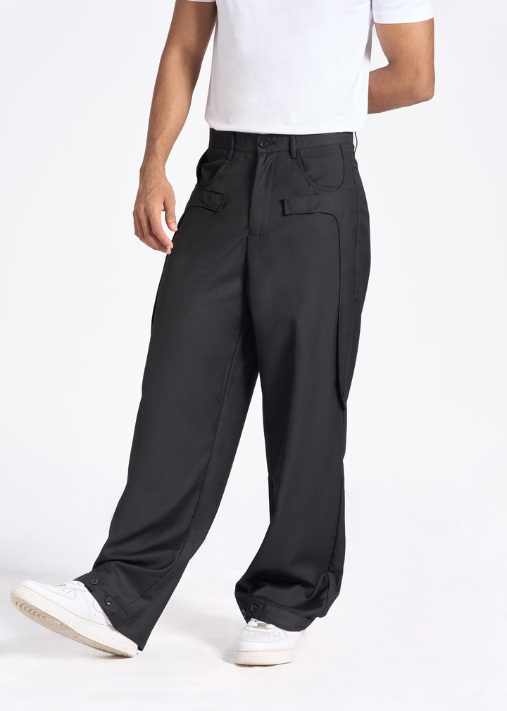 Wide-Leg Trousers with Side Flap & Button-Hem Detail