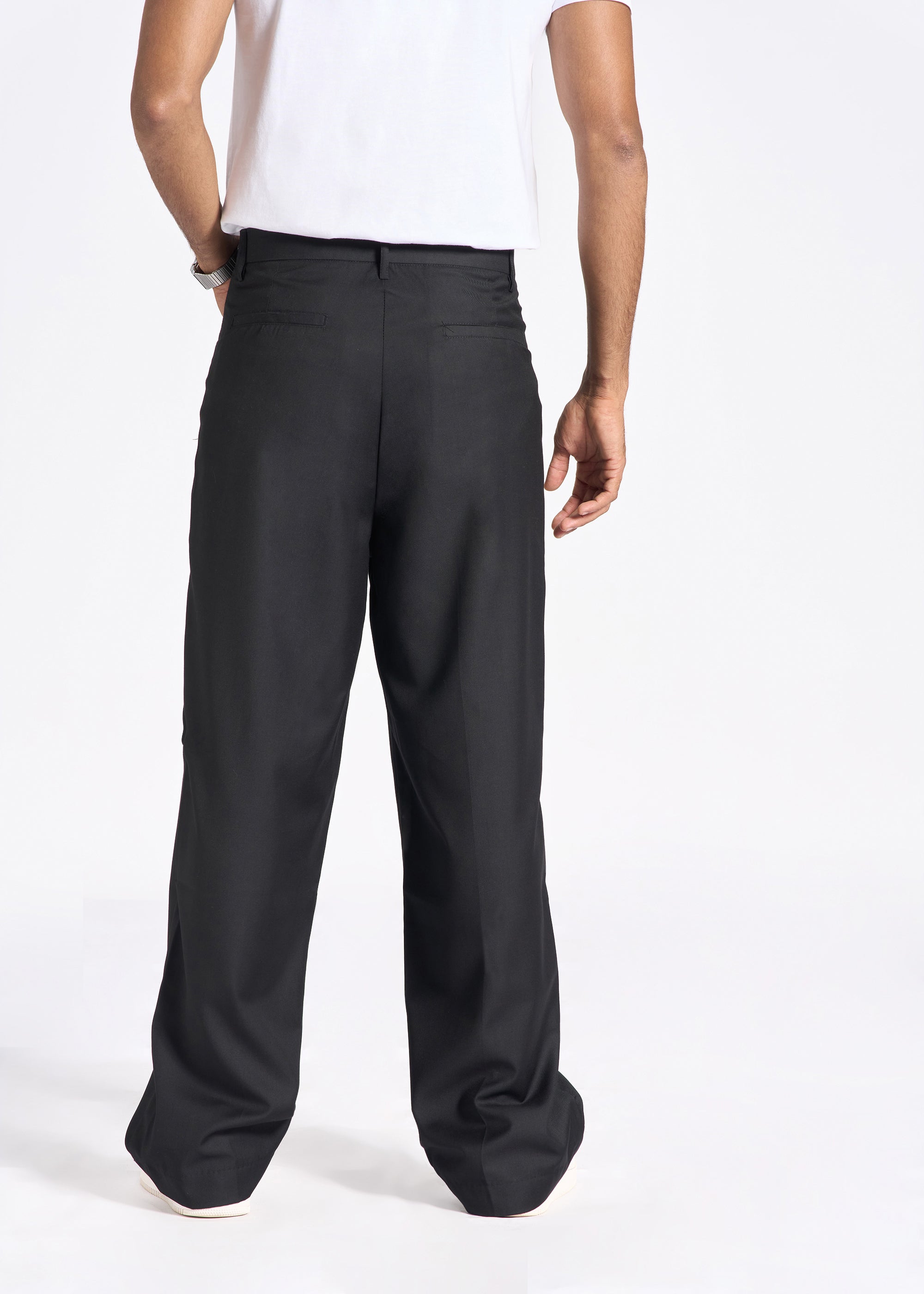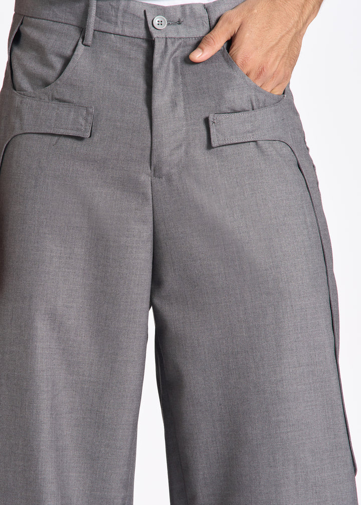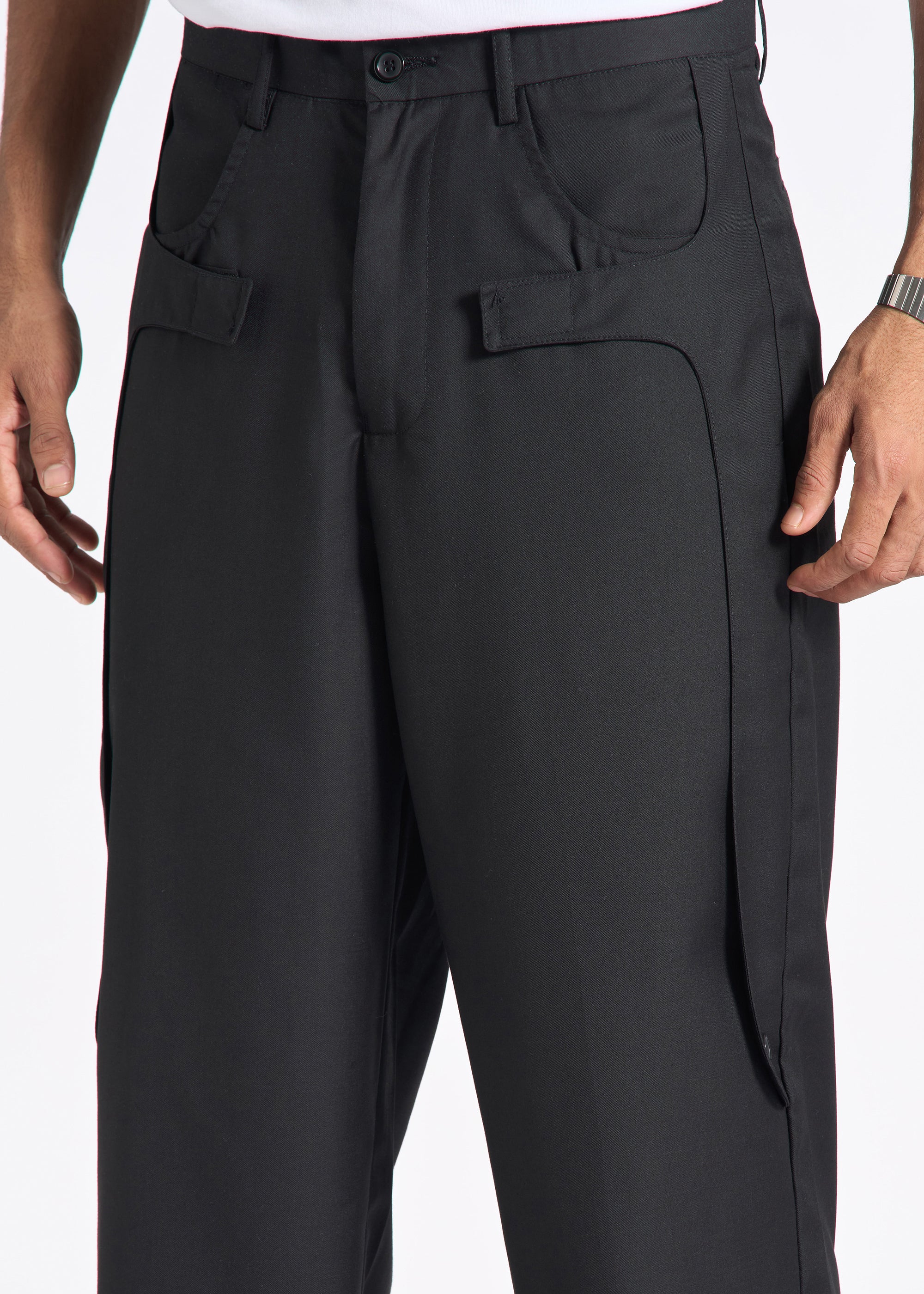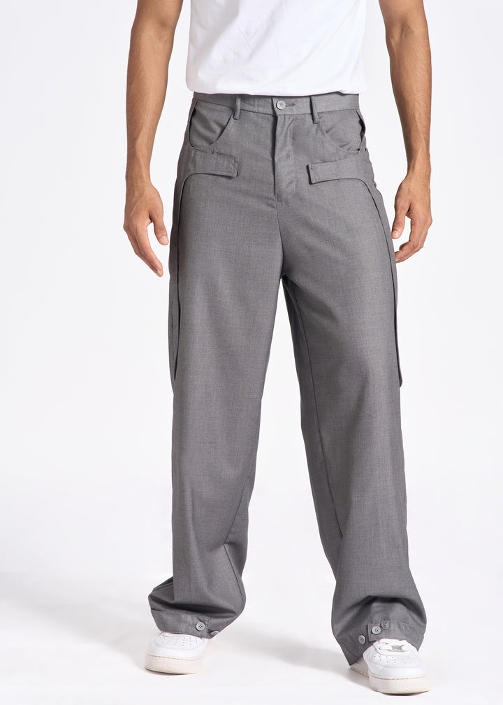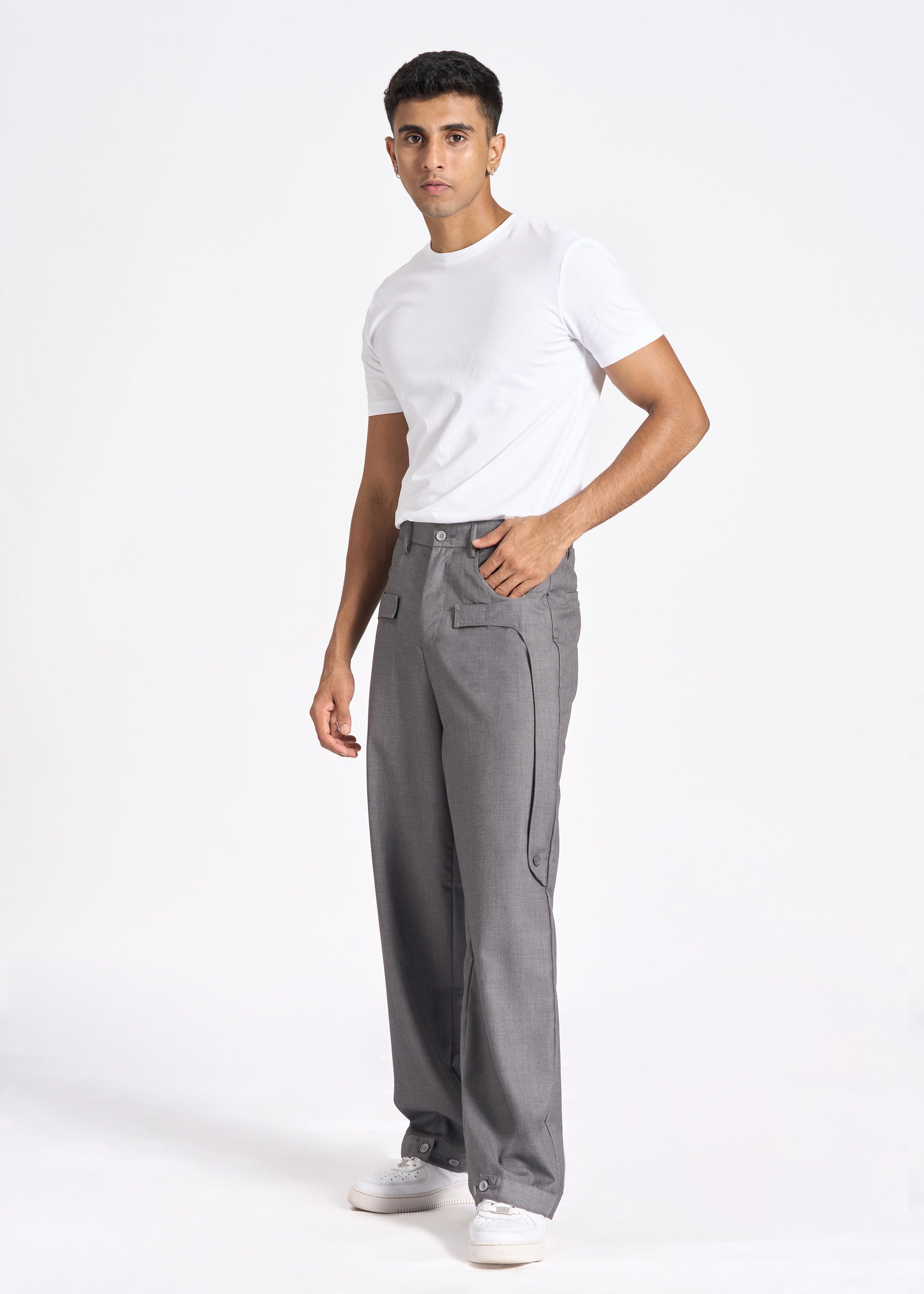Wide-Leg Trousers with Side Flap & Button-Hem Detail